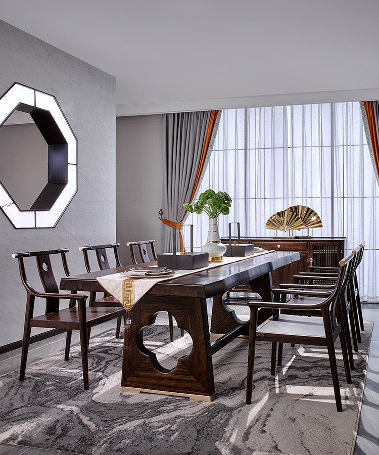 通過對東方元素的解讀,去繁就簡,用簡潔利落的直線條貫穿始終,強調(diào)穿透的層次感。在 視覺上達到一致性,再通過對中式符號優(yōu)雅的處理和表達,將自然意向融合;采用國際流行 時尚的設計風格,融入東方意蘊的元素,使空間產(chǎn)品更具表現(xiàn)力,沉穩(wěn)溫馨,久看不膩。