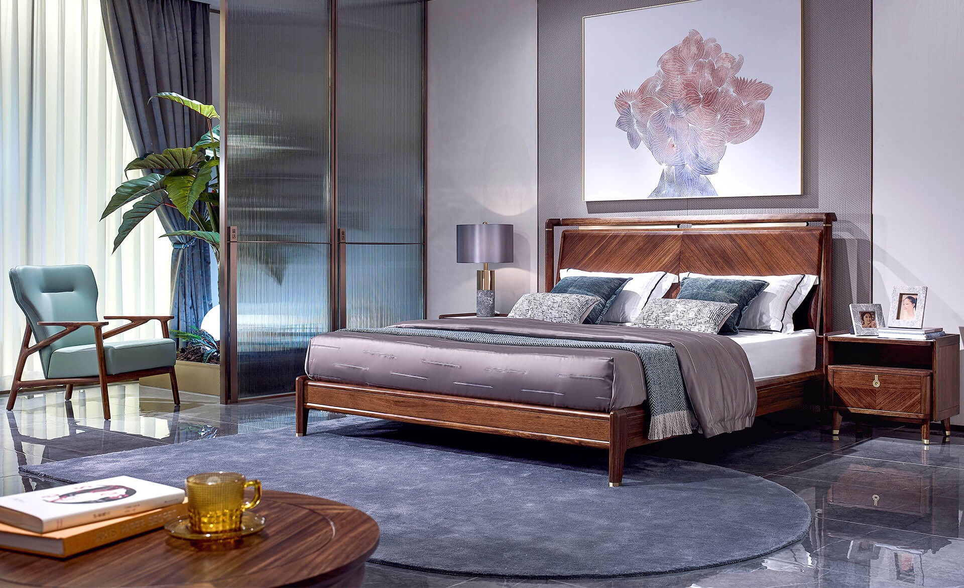 整體氛圍自然清新。床的實木主框架讓人感覺穩(wěn)重大氣,整體線條極為簡潔明朗、干凈利落。