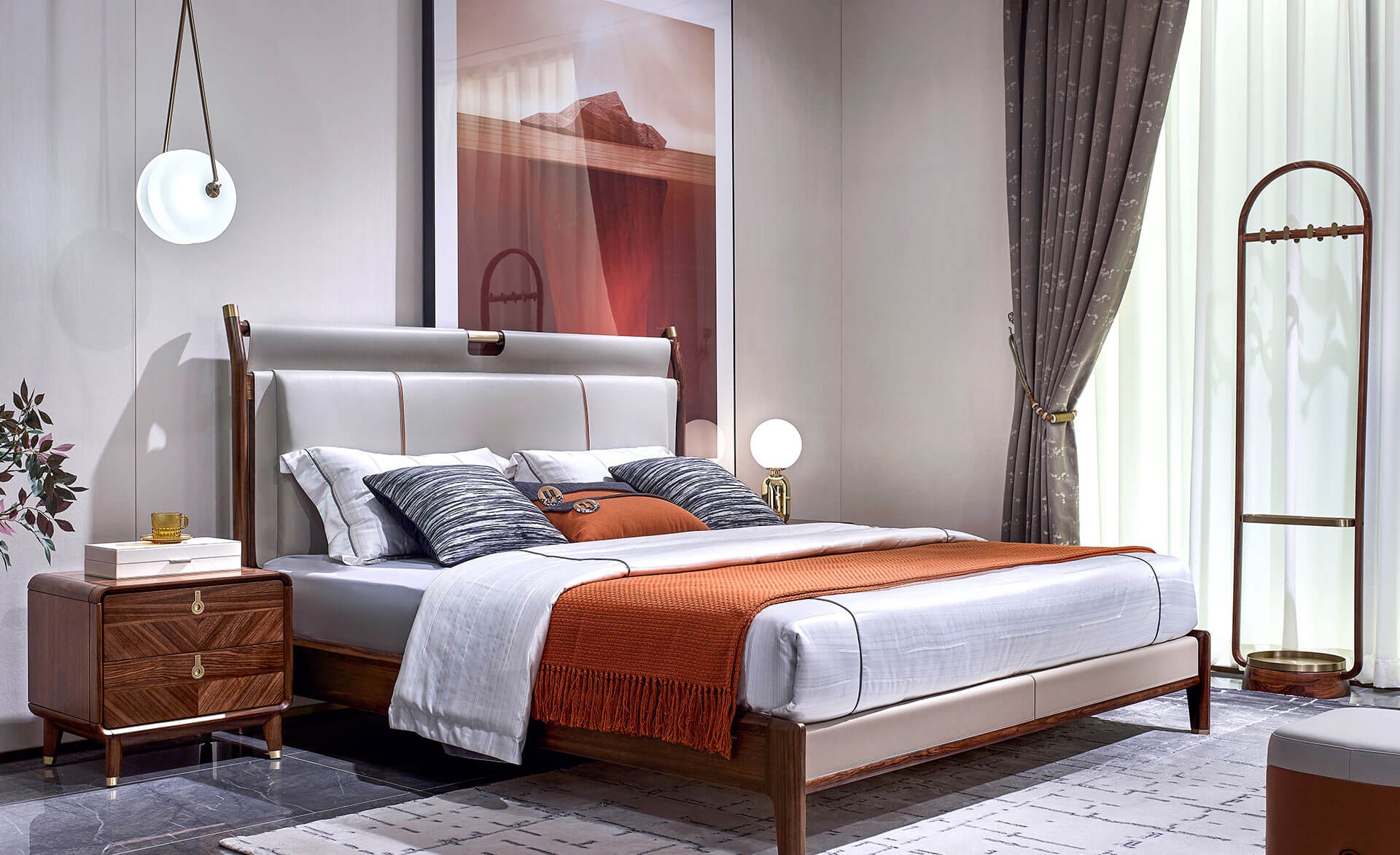 清麗優(yōu)雅、時尚溫暖的一個空間。床的外形設(shè)計非常亮眼,